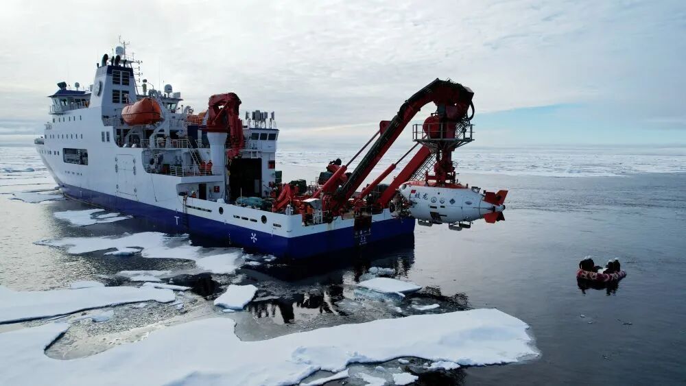“ Jiaolong”带来了深厚的人类潜水到北极圈的冰区。照片:新华社记者派遣的新华社新闻局记者的照片
